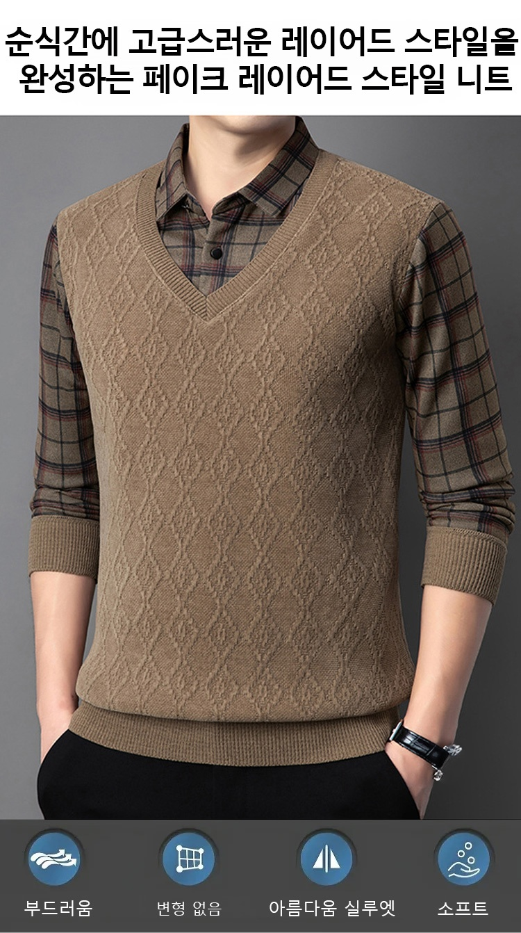 기모 도톰 페이크 레이어드 니트 스웨터